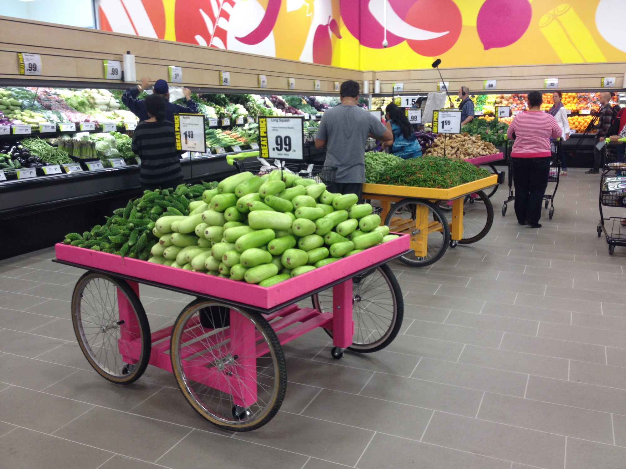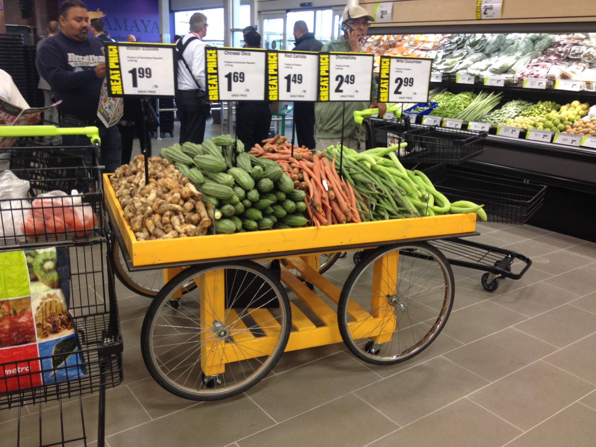 Take, for example, FreshCo's "Chalo" (meaning "let's go" in Hindi) store in the Toronto suburb of Brampton. They welcome the large local South Asian community by focusing heavily on Diwali-themed products in October, over the Halloween products you'd see in most other stores. The store manager is South Asian – he knows what's important to his consumers, stocking authentic products, from sweets to produce to large bags of flour, and ensure there are Hindi and Punjabi speaking employees to assist consumers. Chalo's buyers go directly to India to source products. Display is important at Chalo, too, as much of their produce is featured in colourful carts, similar to those in Indian markets. Having such an authentic connection and large selection helps consumers avoid having to go to two or three smaller stores to get all of their tastes of home.