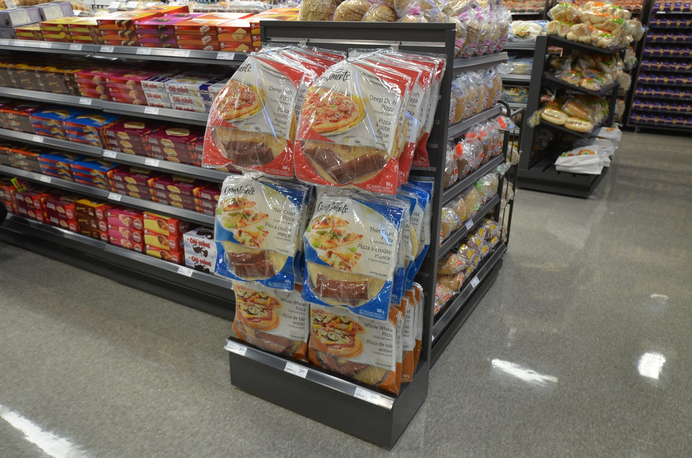 8. Flatbreads: People love flatbreads, but it’s not wise to display them the same way you’d display other bread. We’ve designed displays with pegs to hold flatbreads and help keep them organized and easily accessible.