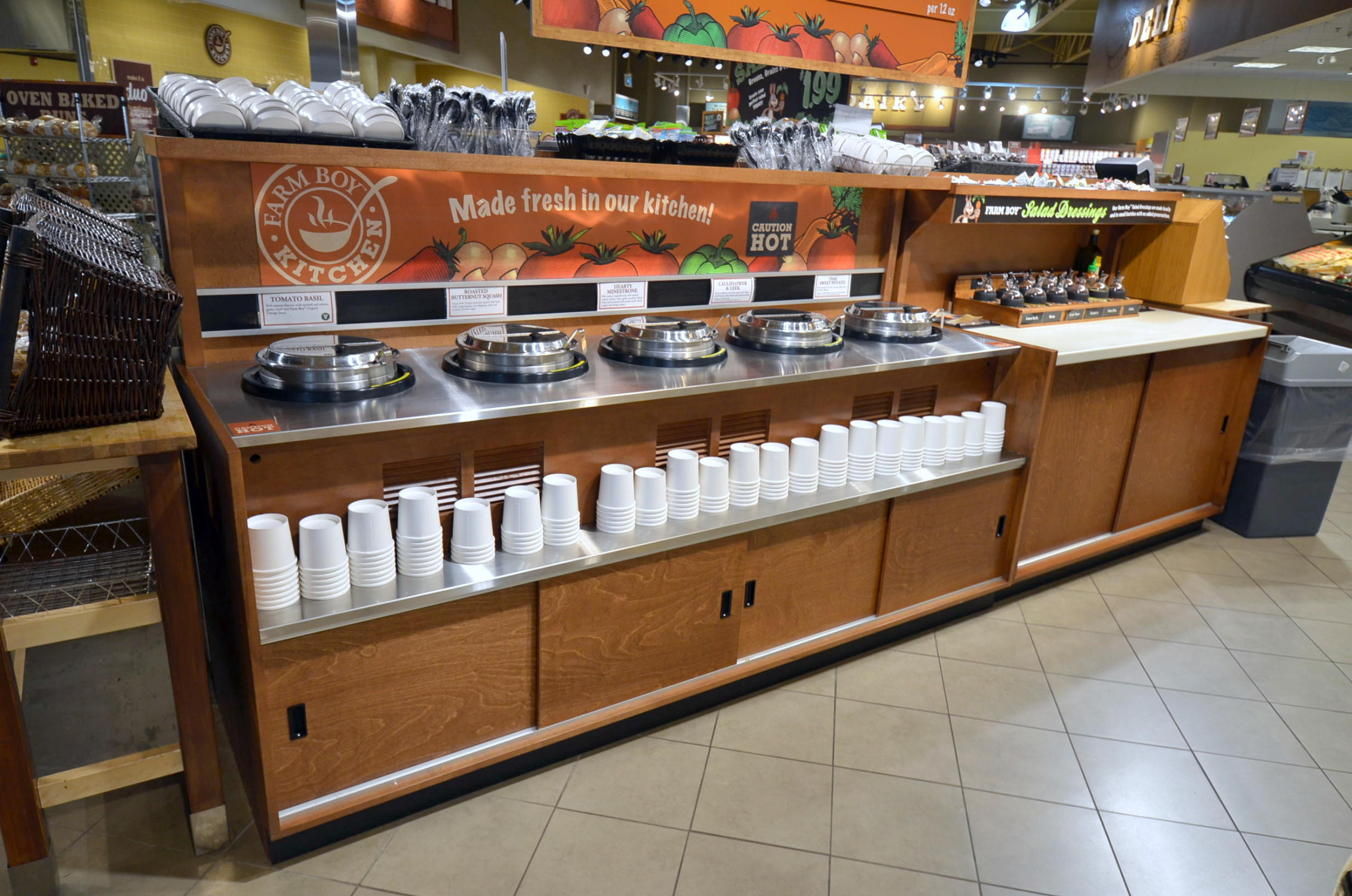Many stores offer mix-and-match options where customers can choose two or three different foods to create a custom meal. Atlantic salmon with steamed asparagus? Easy. Roast beef with horseradish and mashed potatoes? No problem. Freshly-rolled sushi with wasabi and soy sauce? Go for it.