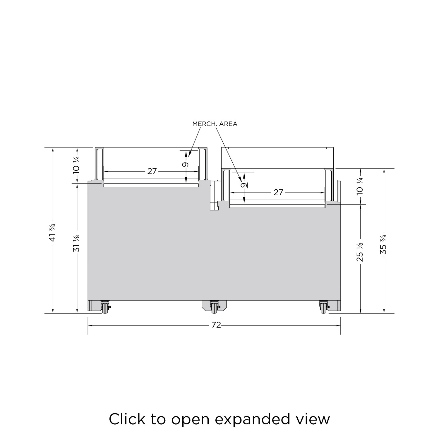 Designed to maintain critical product temperature at 38-41°F with a unique 9” high merchandising area